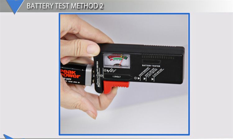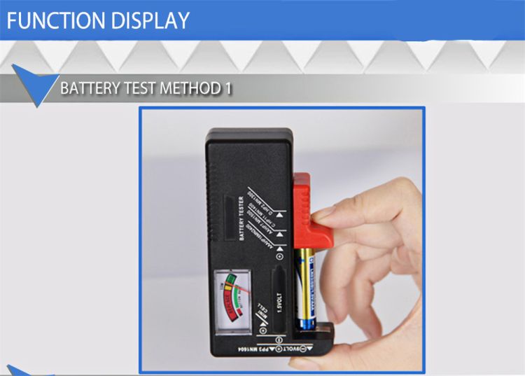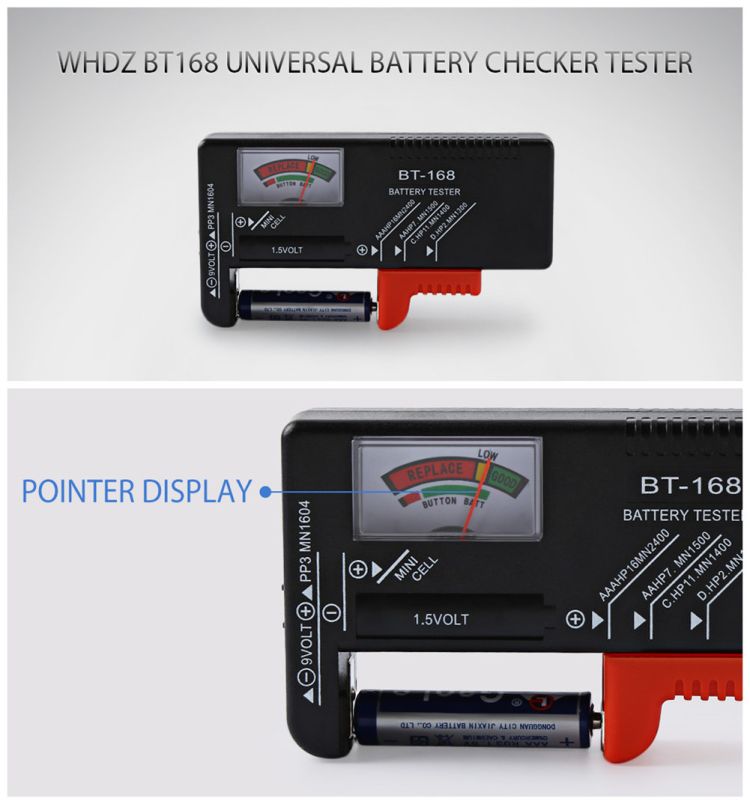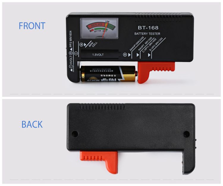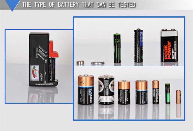 - Test standard and rechargeable batteries: 9V, AA, AAA, etc.