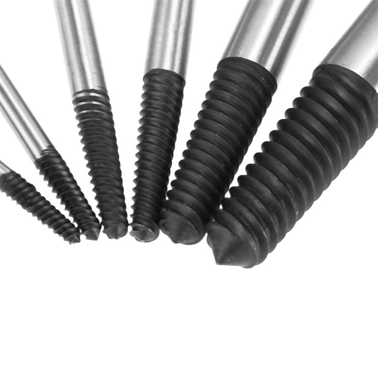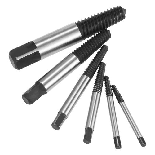 Screw extractor set for easily and quickly removing broken screws, bolts and studs, etc.