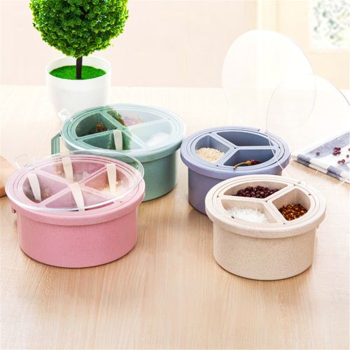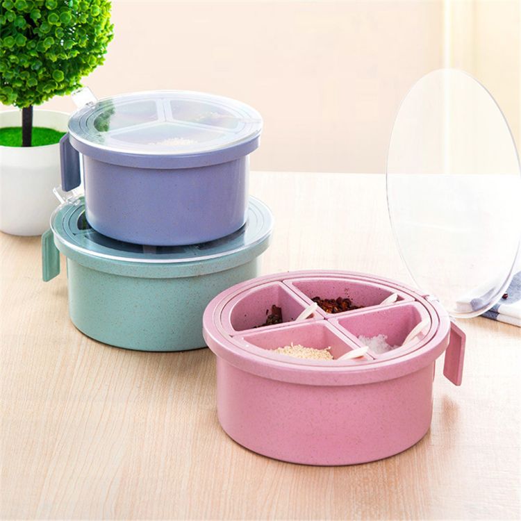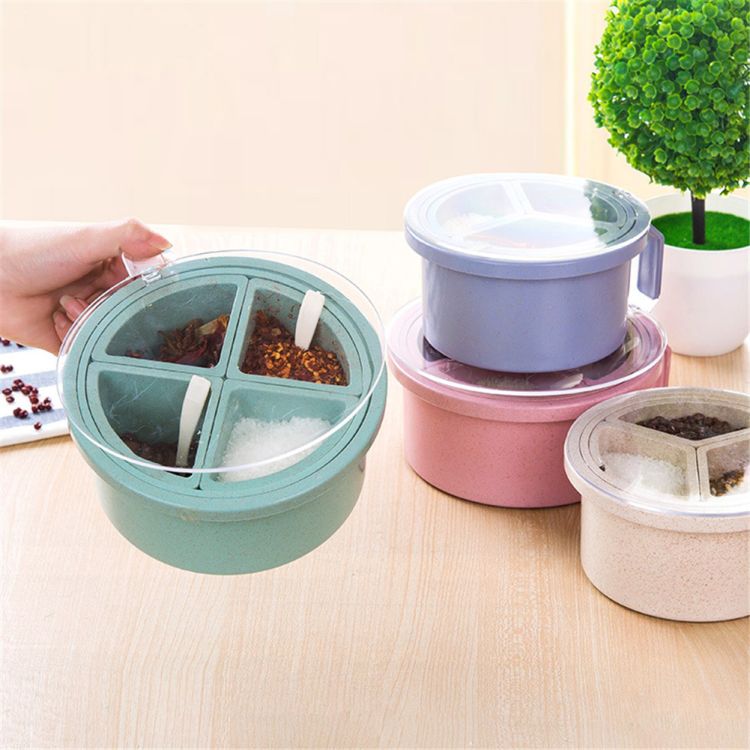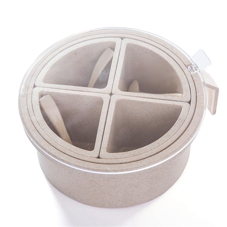 1 * 4 Grid Wheat Straw Seasoning Box(with spoon)