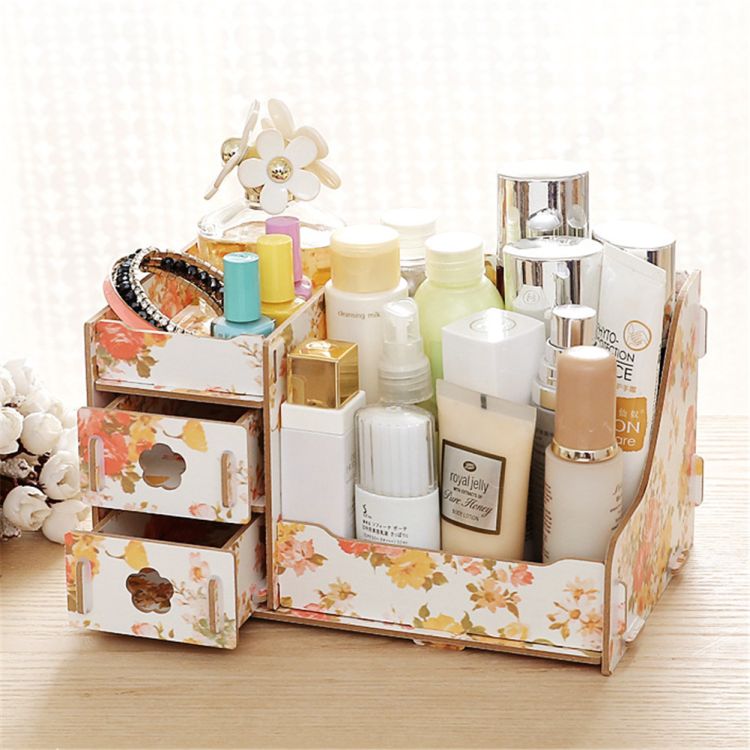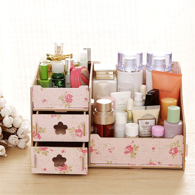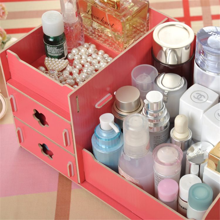 Item Title-- 1 Set DIY Wooden& PP Cosmetic destop Display Organizer Makeup Sorting Container Multi-purpose Sweety Colors S/L