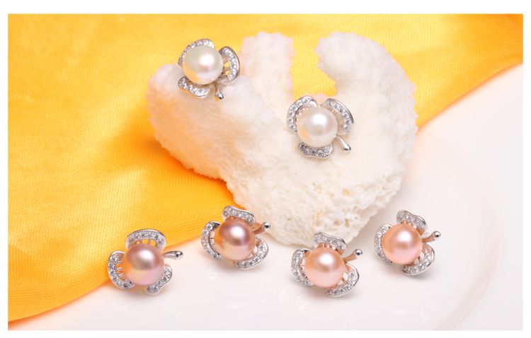 CYNMOON Sterling Silver Pearl Stud Earrings for Women