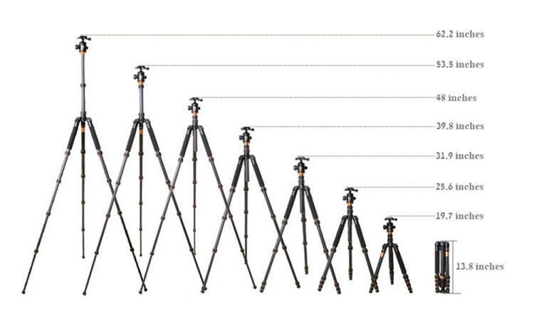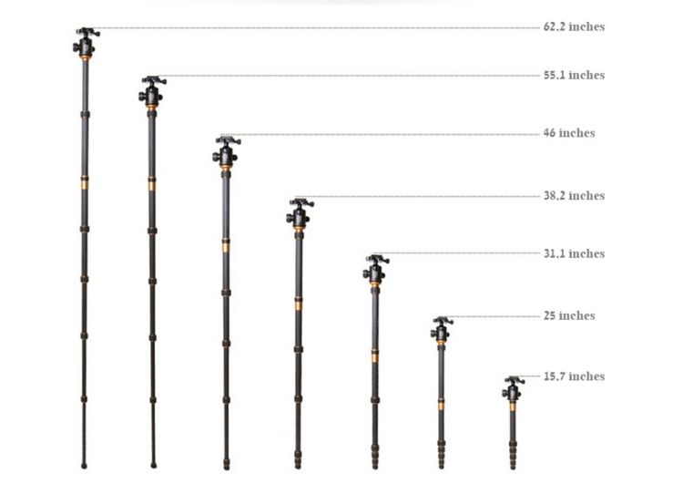 - 5 sections, it can extend from 13.8 inches to 62.2 inches.