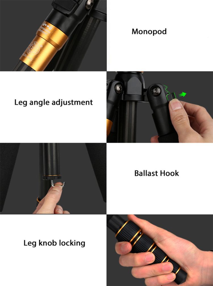 - 1.4 inches sphere tripod head, shooting angle can be adjusted at random.