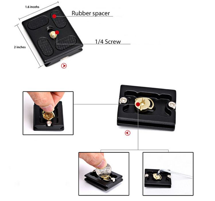 - 1/4 screw, quick-release plate helps to install most cameras quickly.