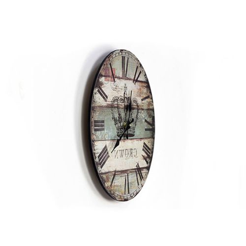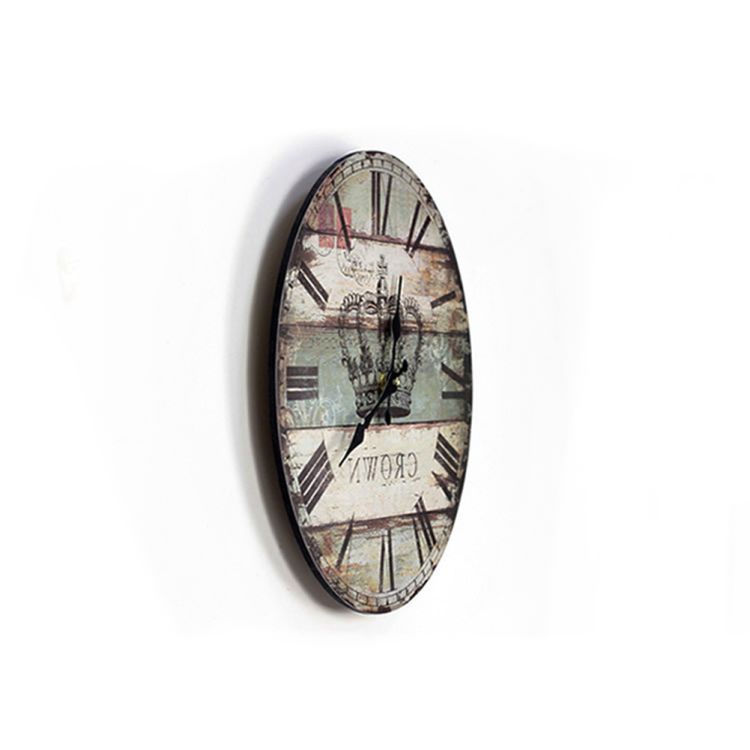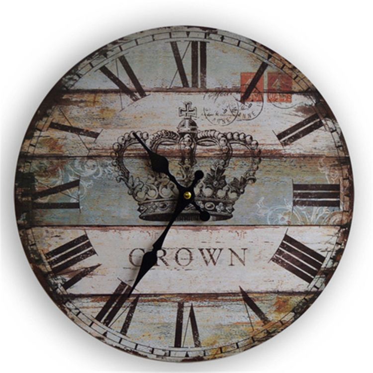 Wall Clock Crown British Style Retro Wood Home Decor Chic