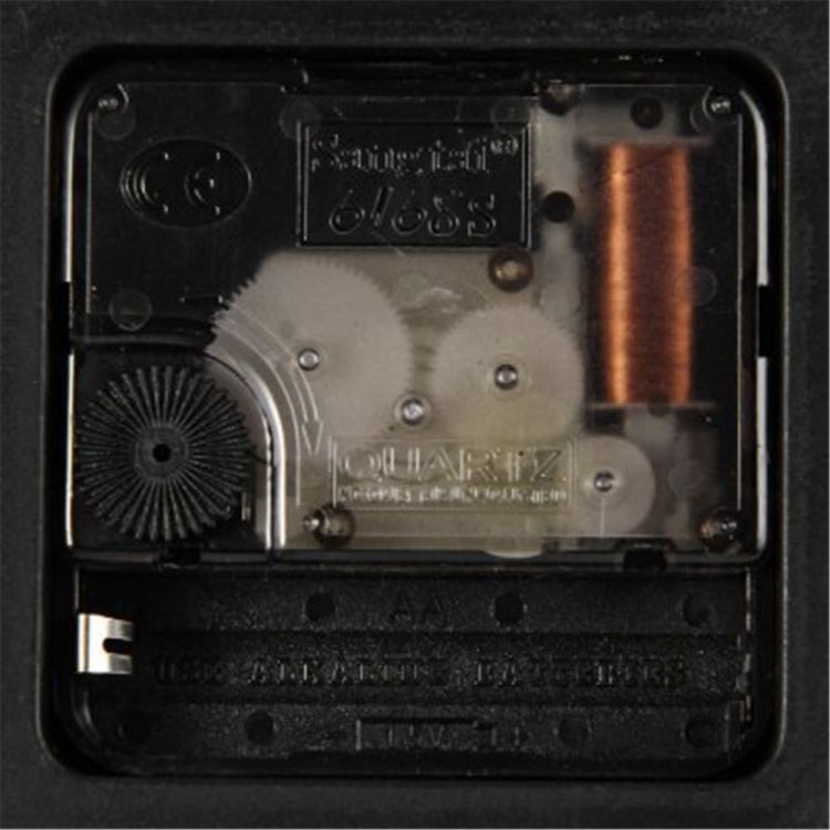 This is a retro styled analog wall clock made from wood. This clock will add charm to any room in your home. There is a plastic shell casing behind the clock for batteries. Only one AA battery is required for this clock (not included).