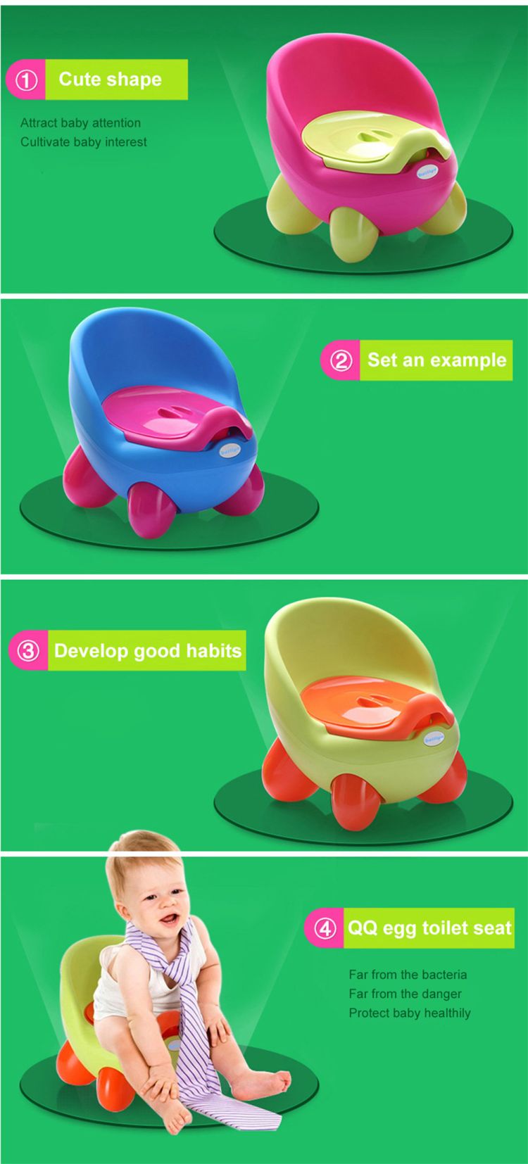 Baby Child Cartoon Cute PP Pedestal Pan Nontoxic Training QQ Eggs Toilet Seat Cute QQ egg shape toilet seat, baby beloved pedestal pan. PP material, healthy, nontoxic, environmental protection.