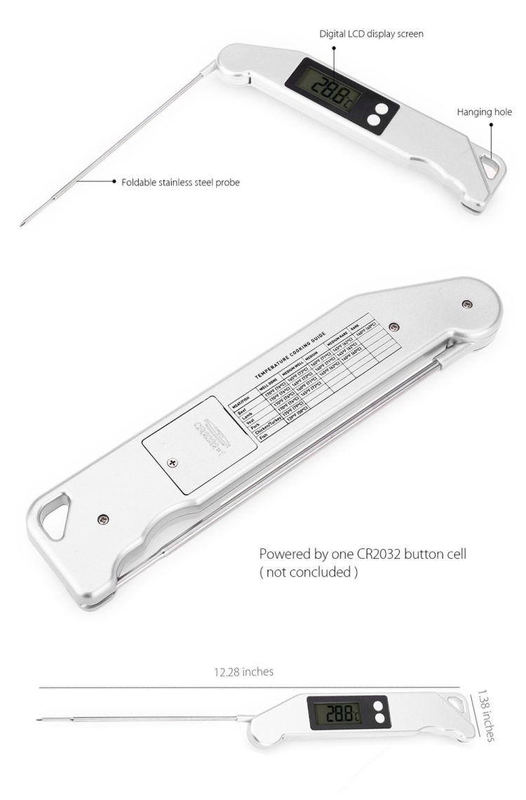 - Foldable thermoprobe make it easy and quick the detect the food temperature