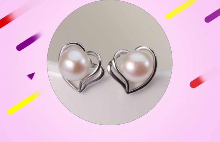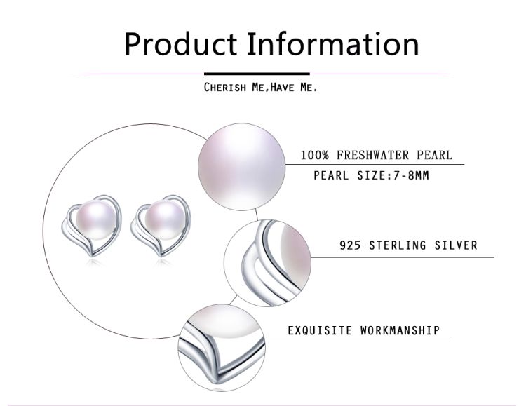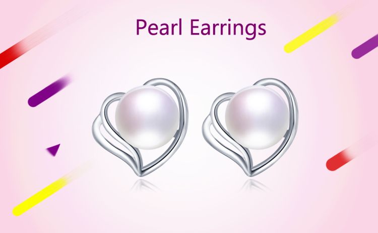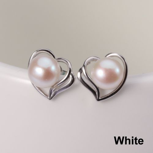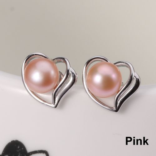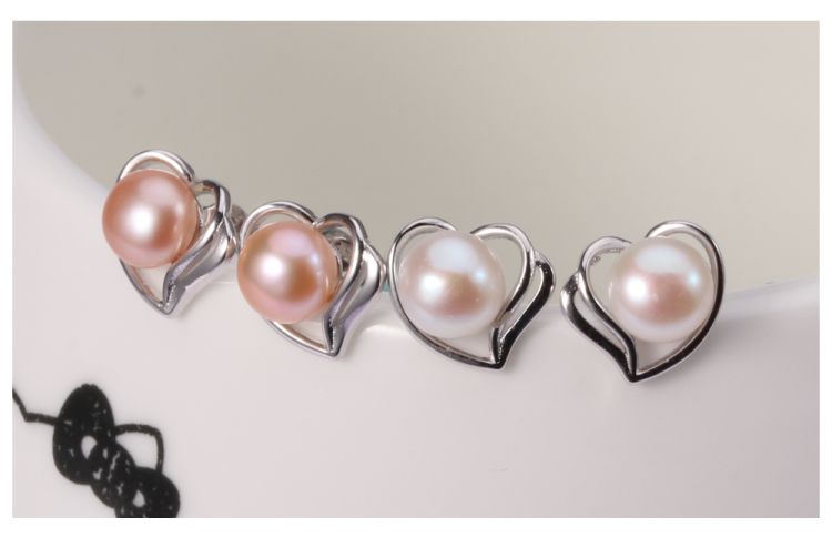 CYNMOON freshwater pearl stud earrings heart design silver jewlery