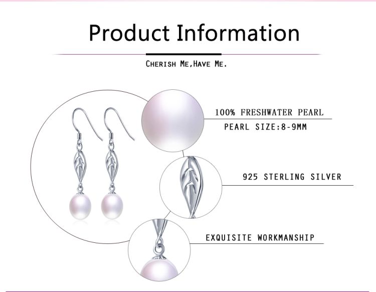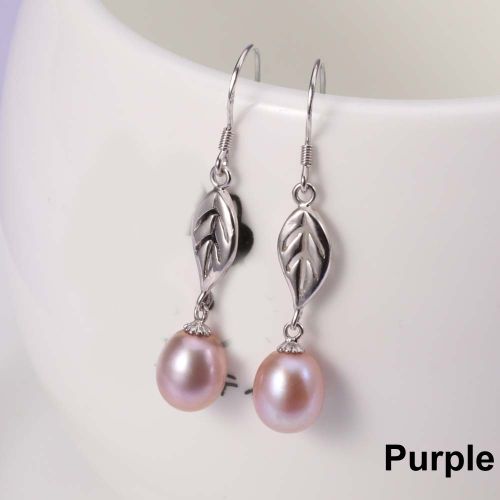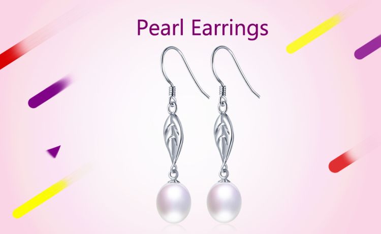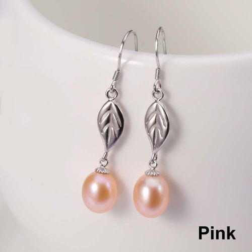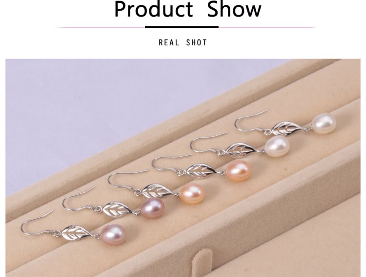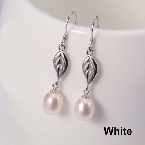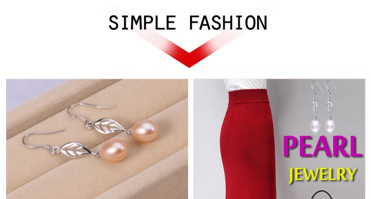 CYNMOON women leaf shaped silver jewelry pearl hook earrings