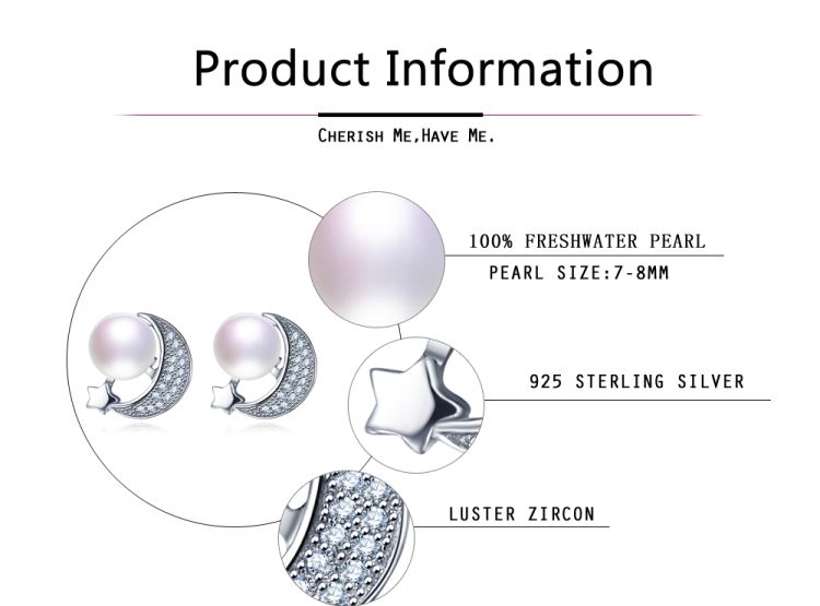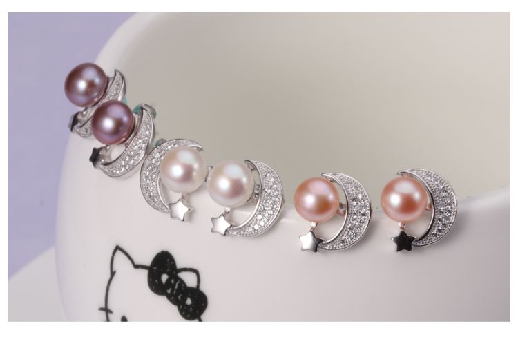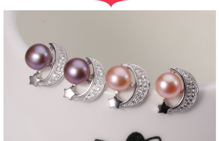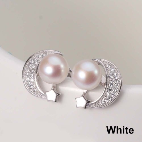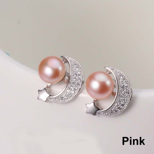CYNMOON pearl stud earrings Moon shaped silver jewelry
