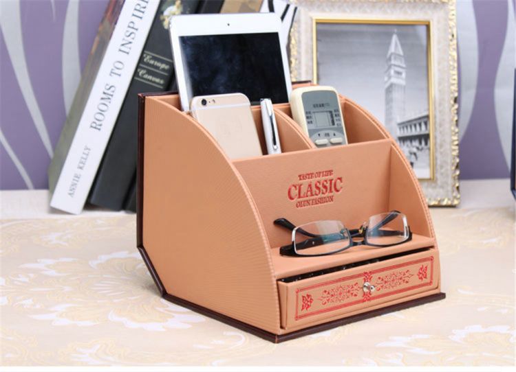 Desk Organizer Makeup Cosmetic Storage Box Book Pattern Remote Control Phone Holder Home Office Storage Case