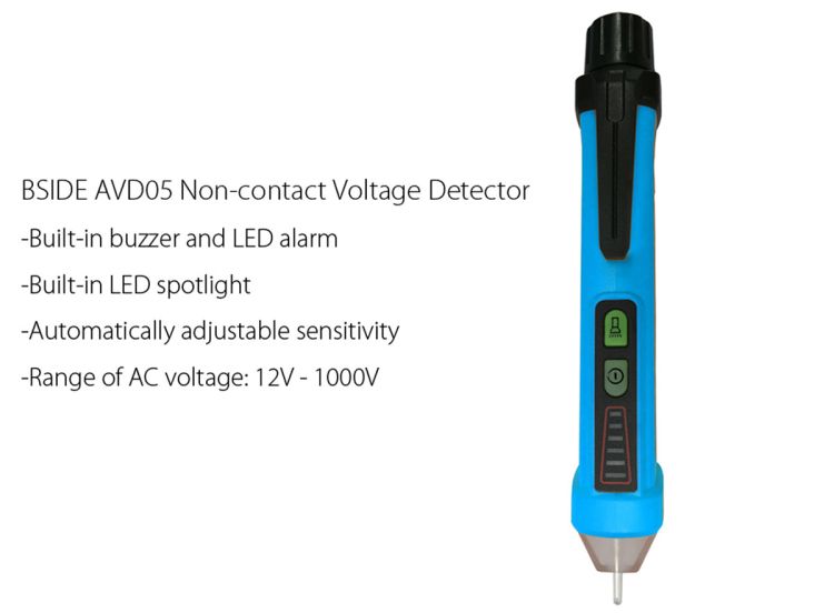 The non-contact voltage detector is a handy device which is useful for indicating if there is current running in the circuit or system. The BSIDE AVD05 has an automatically adjustable sensitivity. That allows you to determinate intensity of the signal.