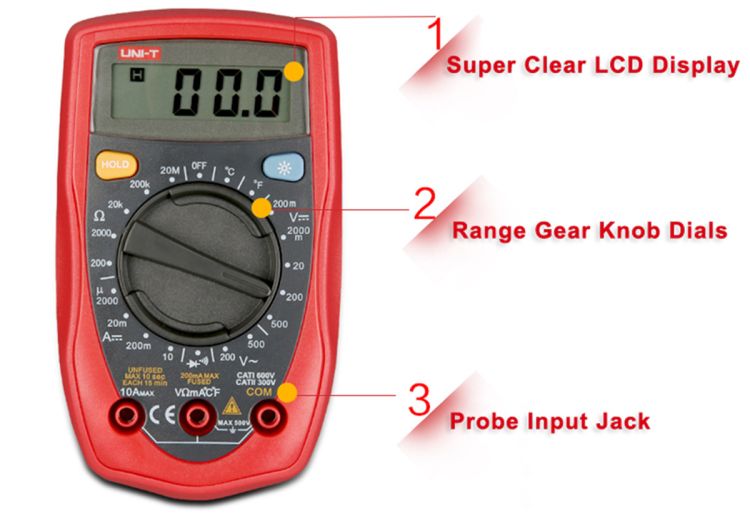 Title: UT33B Multimeter Digital Measuring Analyzing Tool AC Voltage 200V/500V