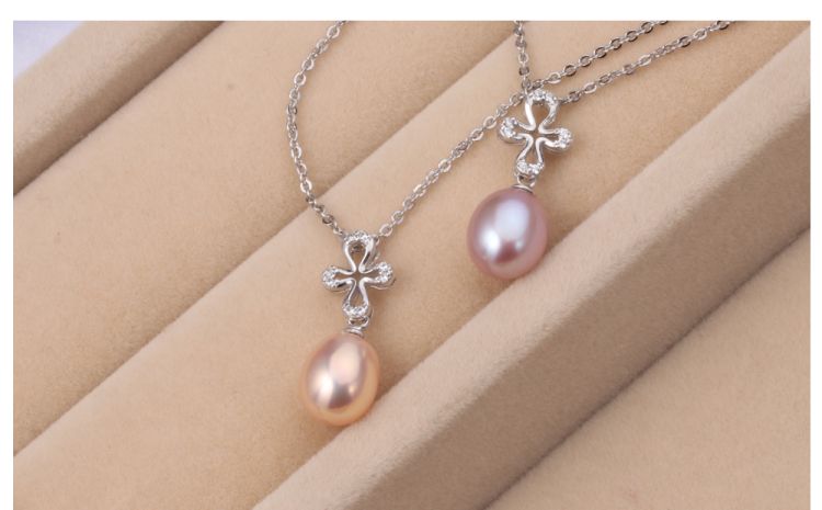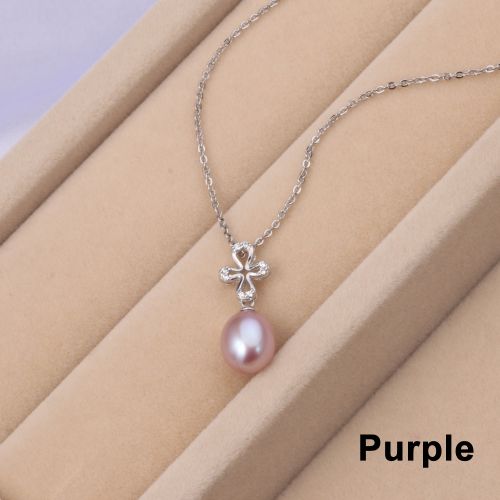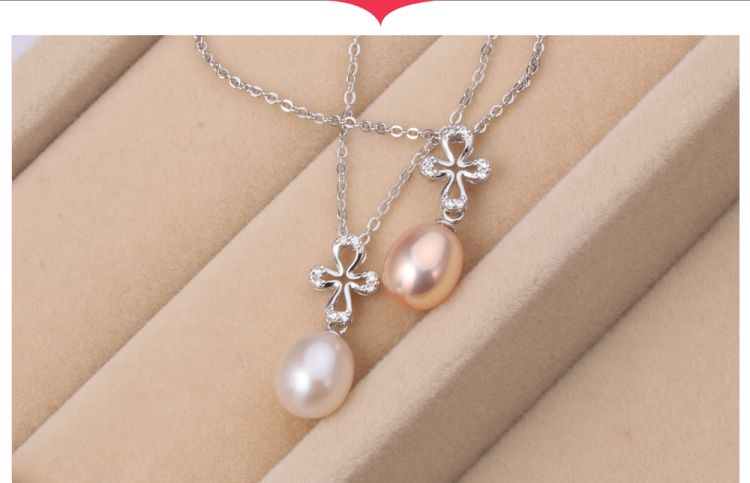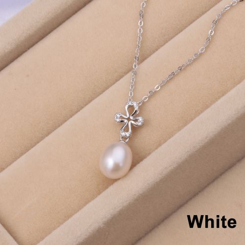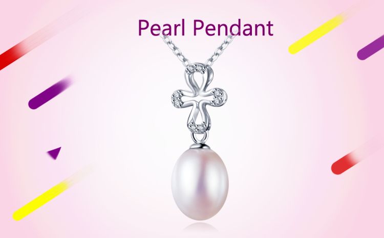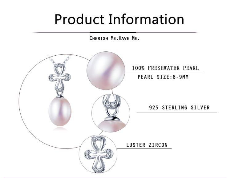 CYNMOON natural freshwater pearl pendant neckalce cross design sterling silver jewelry