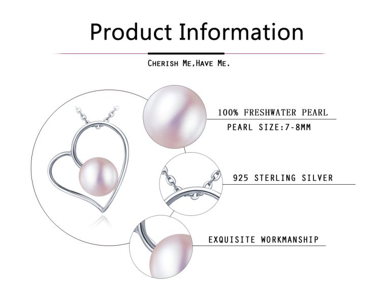 CYNMOON natural freshwater pearl pendant heart design sterling silver jewelry