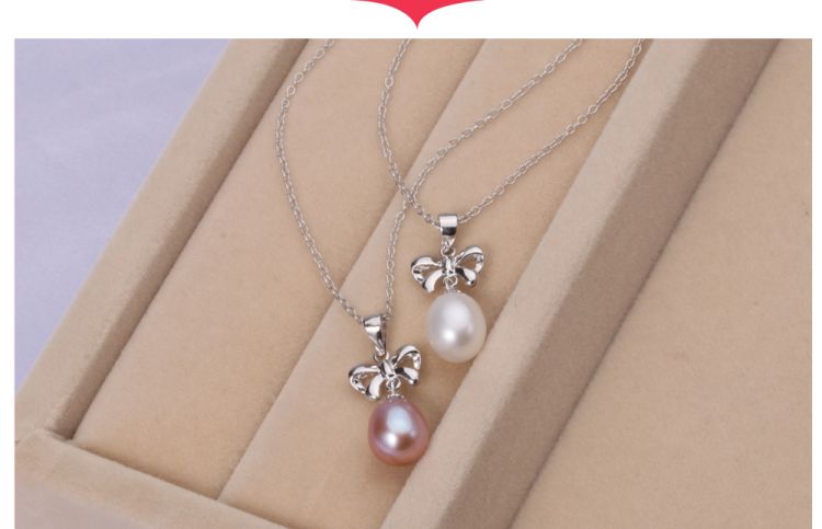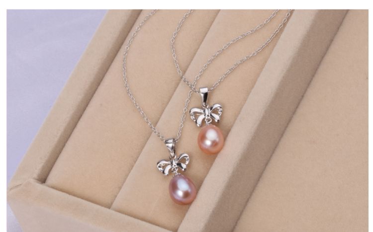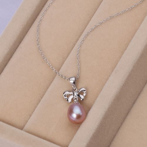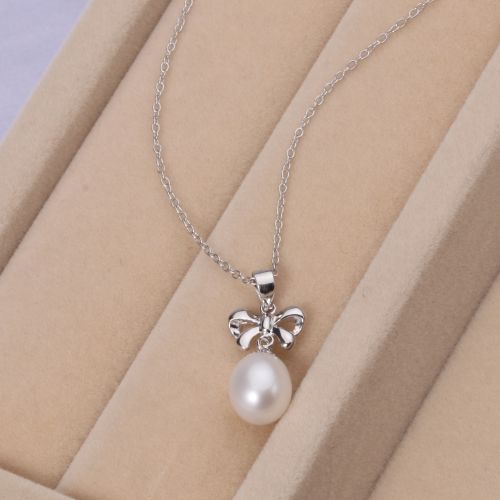 CYNMOON freshwater culturled pearl pendant necklace bowknot shaped silver jewelry