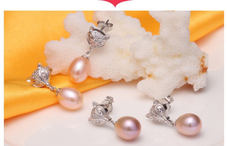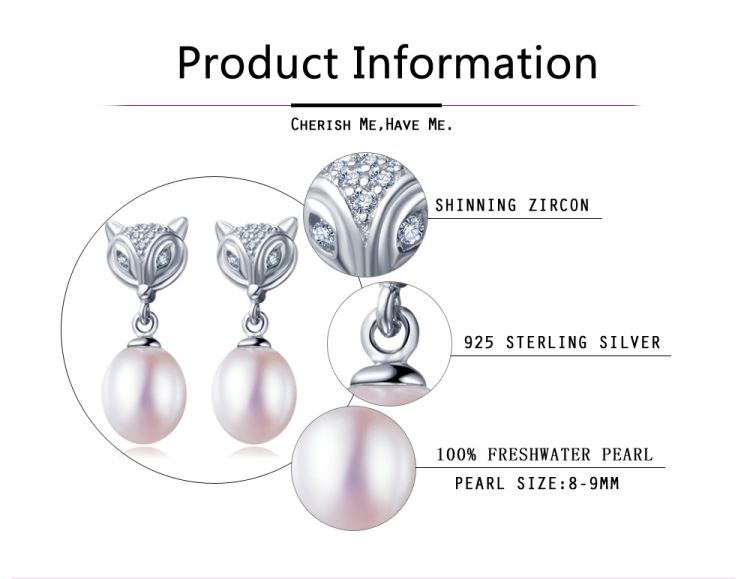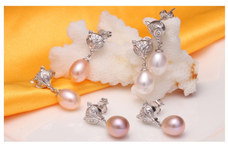 CYNMOON fox design sterling silver jewelry for women pearl earrings