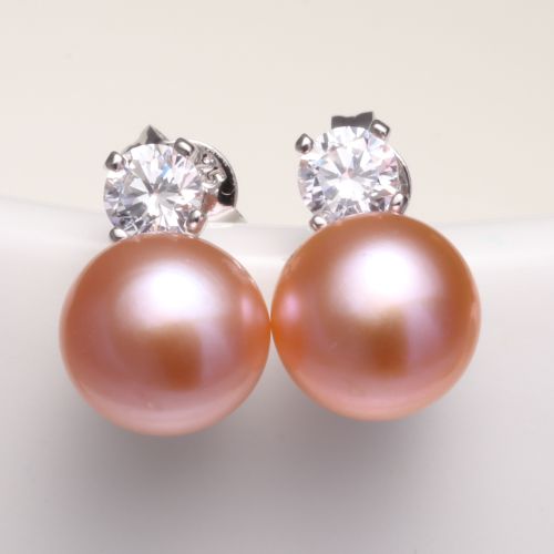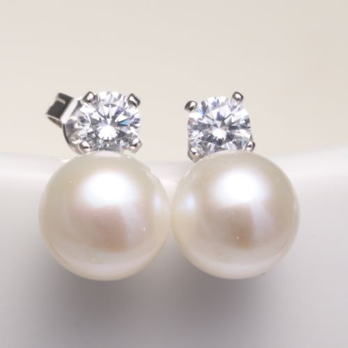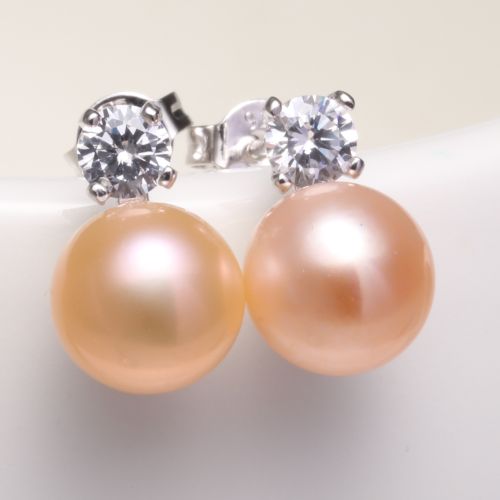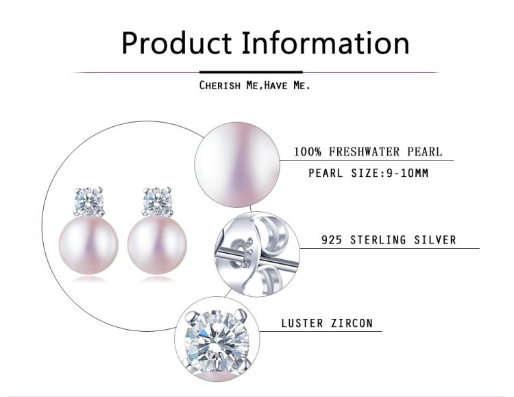 CYNMOON natural freshwater pearl stud earrings jewelry with zircon