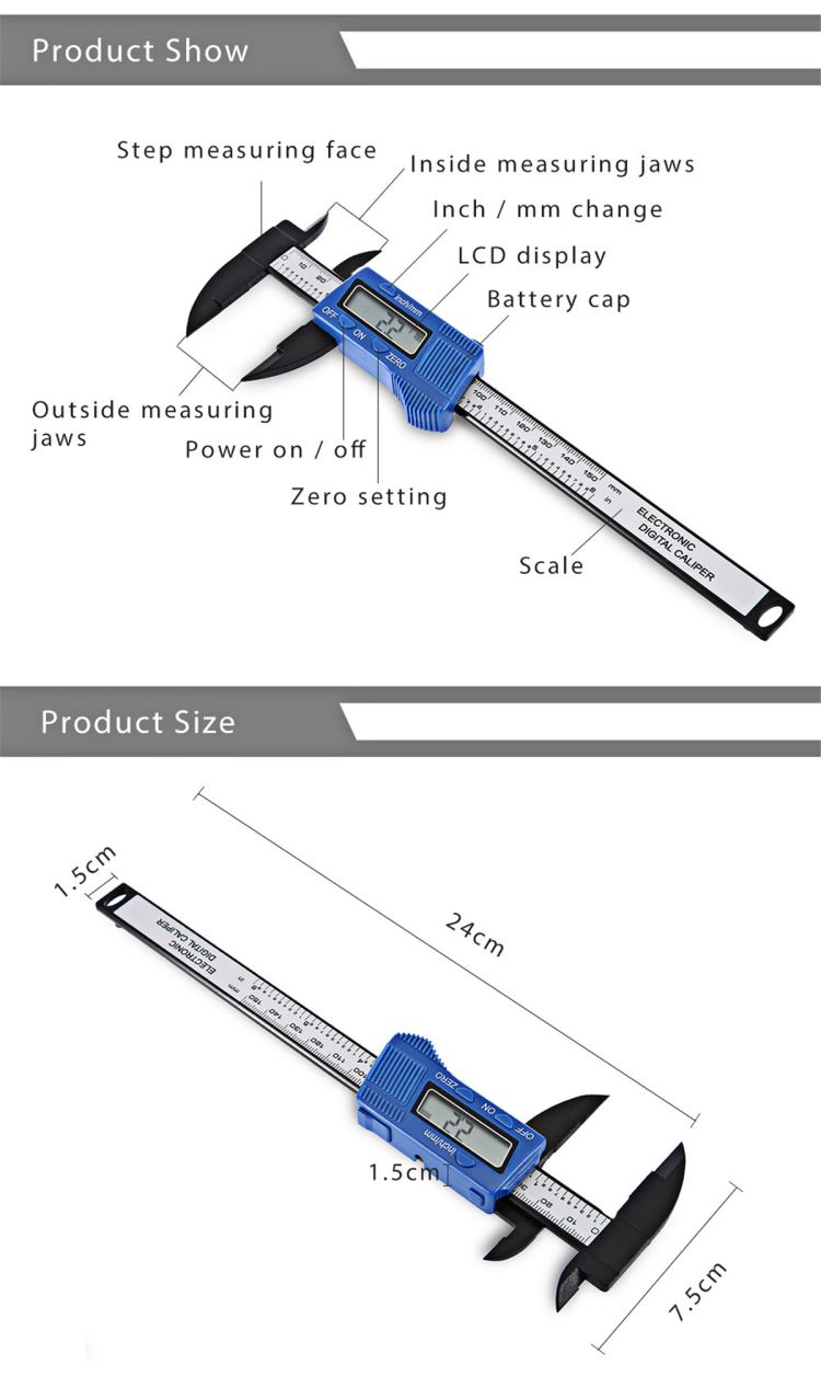 Title: Measurement Tool Carbon Fiber Electronic Digital Caliper Precision Metric with Large LCD Screen 150mm 6 inch
