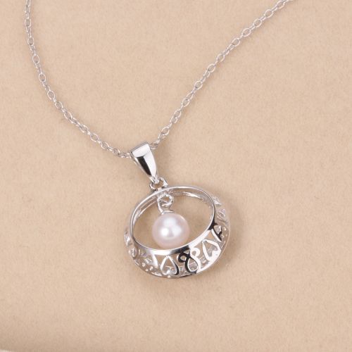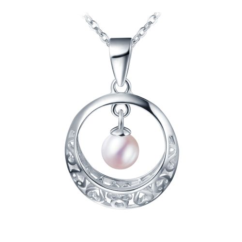 CYNMOON Natural Freshwater Pearl Pendant Necklace Jewelry Hollow design Silver Jewelry