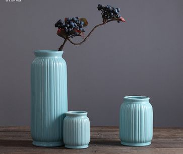 Simple modern American village blue ceramic vase three - piece ornaments large pieces of crafts