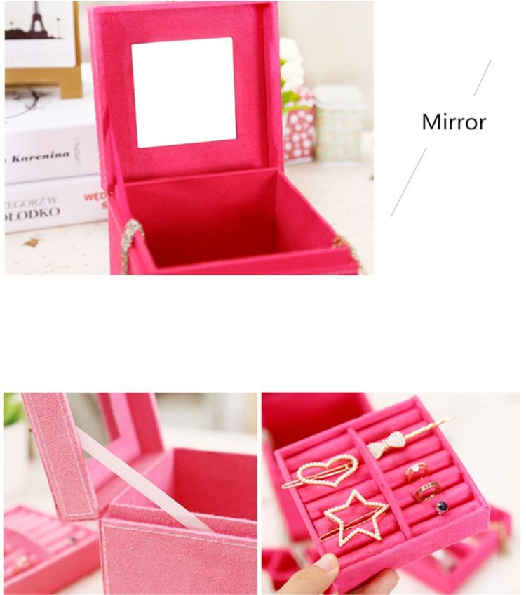 STYLISH AND PORTABLE: The storage box has a kind of elegant style. It can be used at home or outdoors. It is light and its hand-held design is very convenient for you to take it. There is also a mirror in it, very useful.