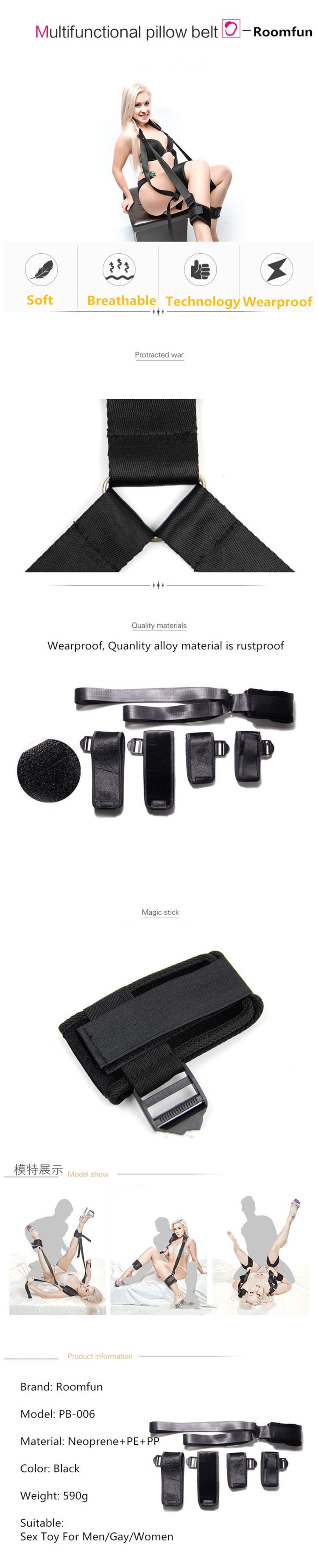 Roomfun Erotic Positioning Bandage Neck Handcuffs Open Leg Bind Belts Bed Rope Bdsm Slave Restraint Sex Toys