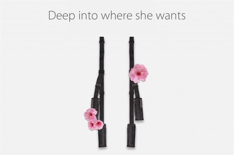 - Let your lover slowly slide their arms through the upper loops, adjust the straps to a cozy and appropriate height