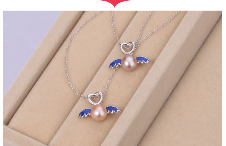 CYNMOON Natural Freshwater Cultured Pearl Pendant Necklace Angel Design Silver Jewelry