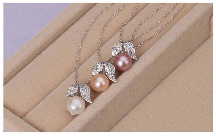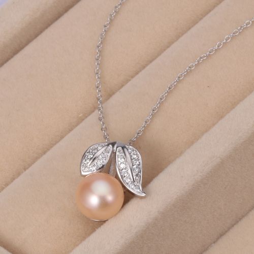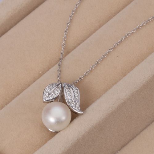 CYNMOON Women Trendy Freshwater Pearl Pendant Jewelry Leaf Shaped Silver Jewelry