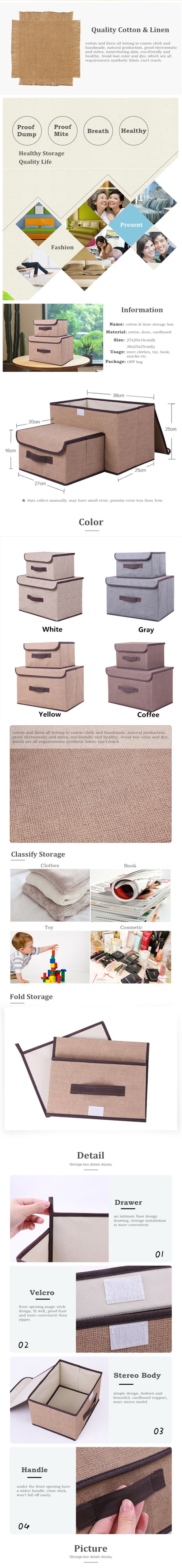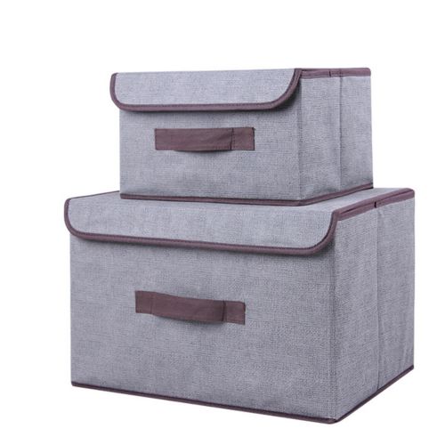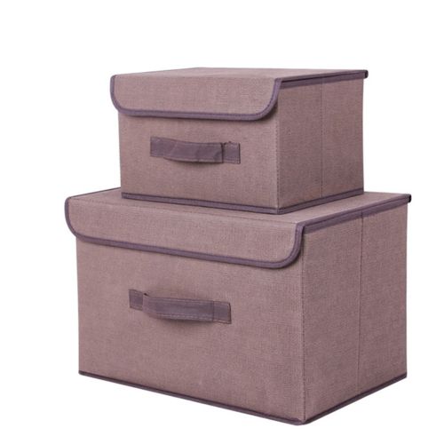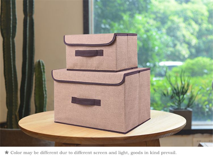 2pcs Cotton And Linen Storage Box With Cap Clothes Socks Toy Snacks Sundries Organizer Box Set
