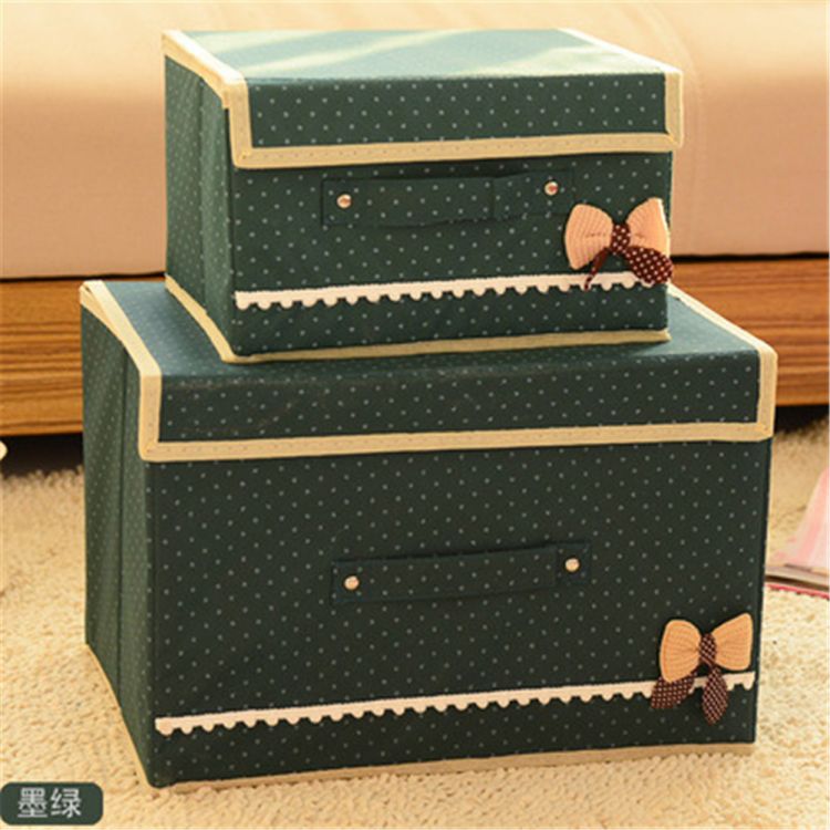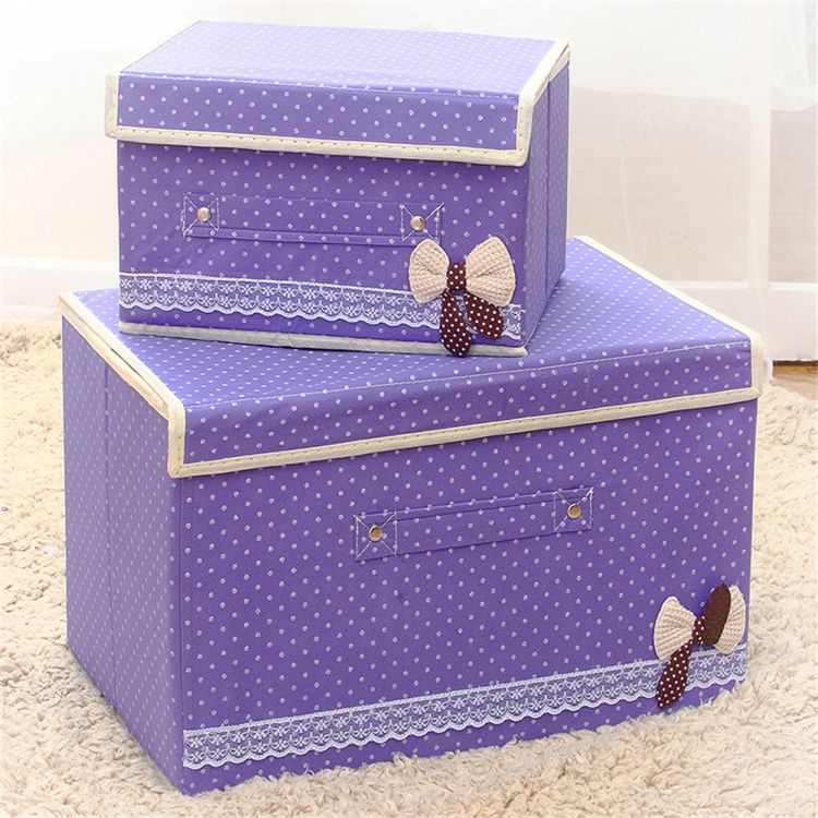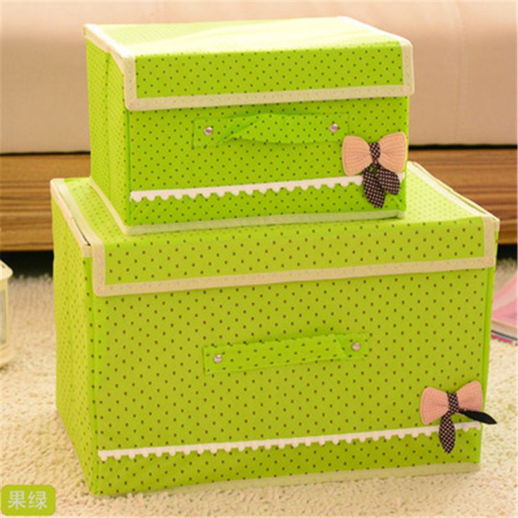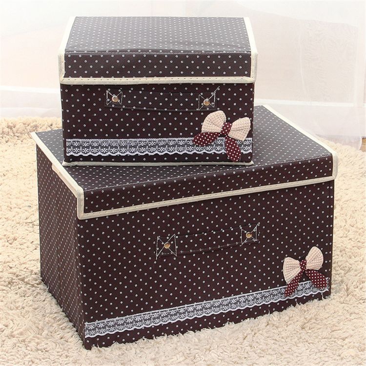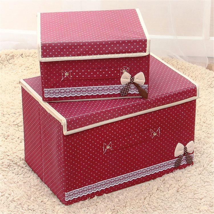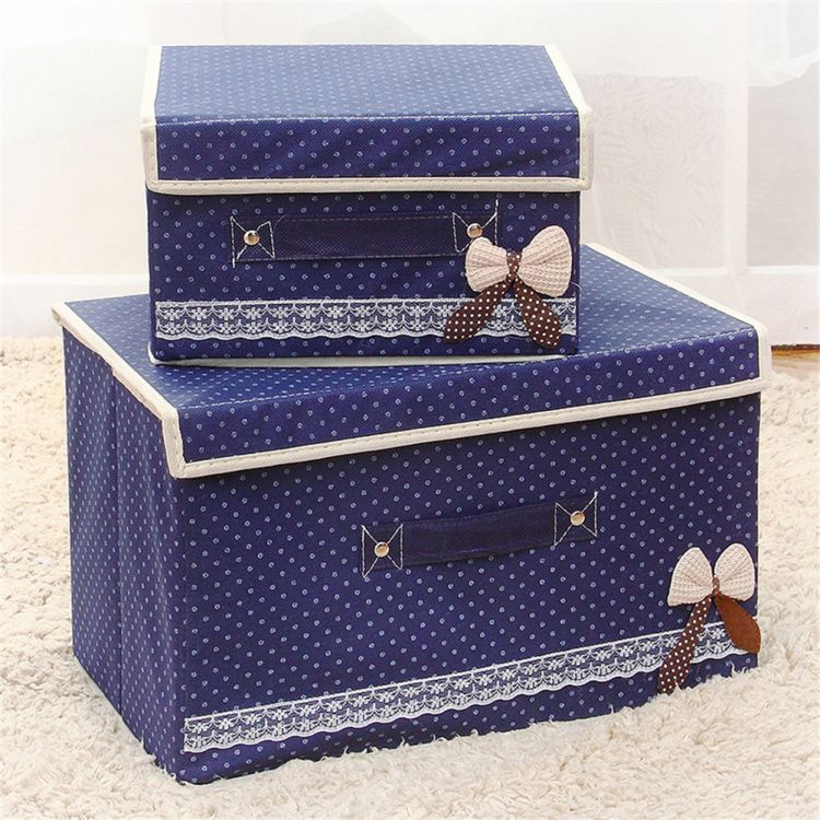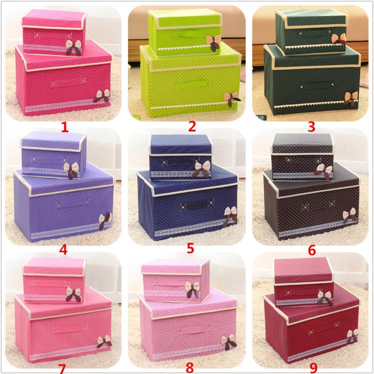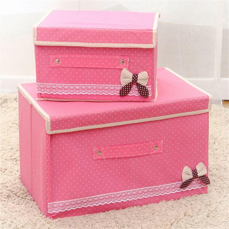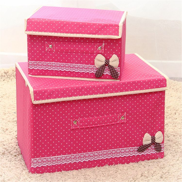 2pcs Polka Dots Bowknot Storage Box Folding Nonwoven Fabric Floral Organizer Container Large Small