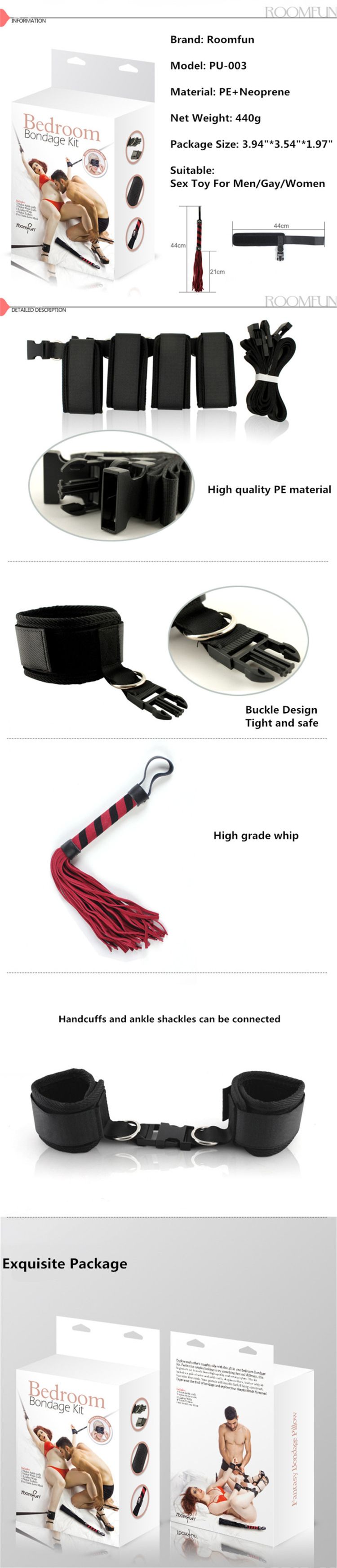 Roomfun 5PCS Whip Black Lash PE Bandage Sex Toys Bdsm Slave Restraint Erotic Toys