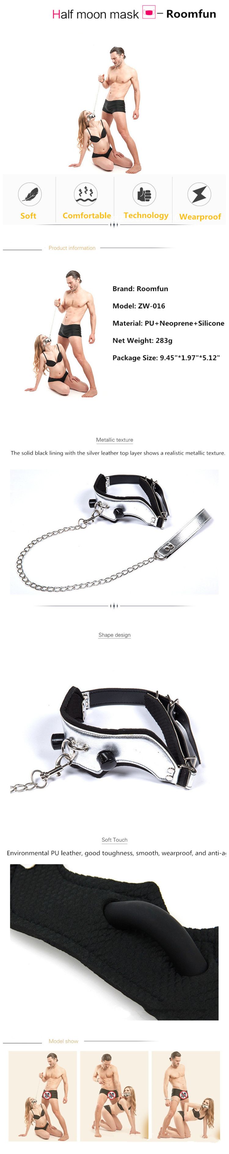 1pc*Roomfun Erotic Half Moon Shape Bite Mask Bdsm Slave Restraint Sex Toys