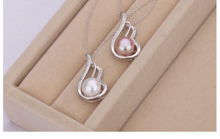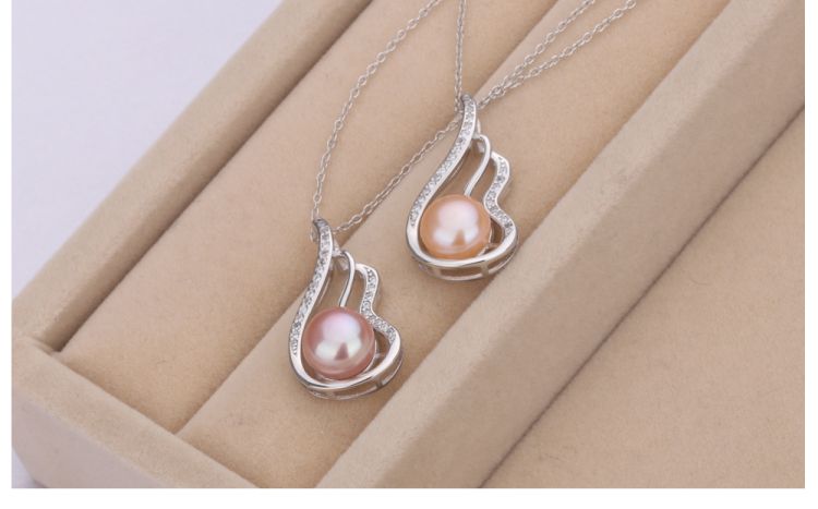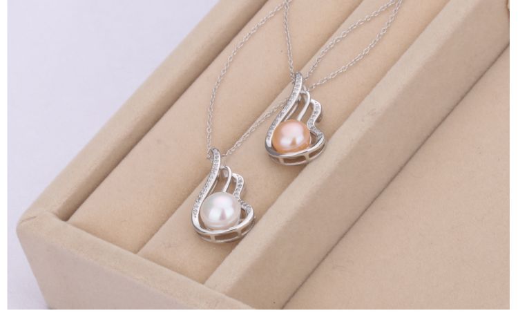 CYNMOON Natural Freshwater Pearl Pendant Necklace for Women Sterling Silver Wing Design Pearl Jewelry