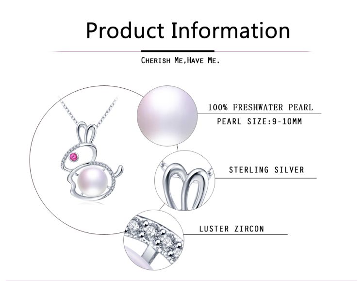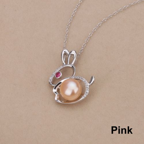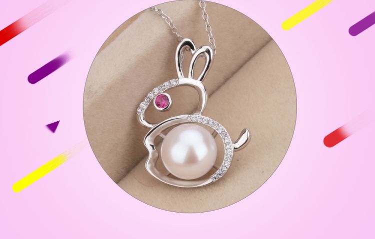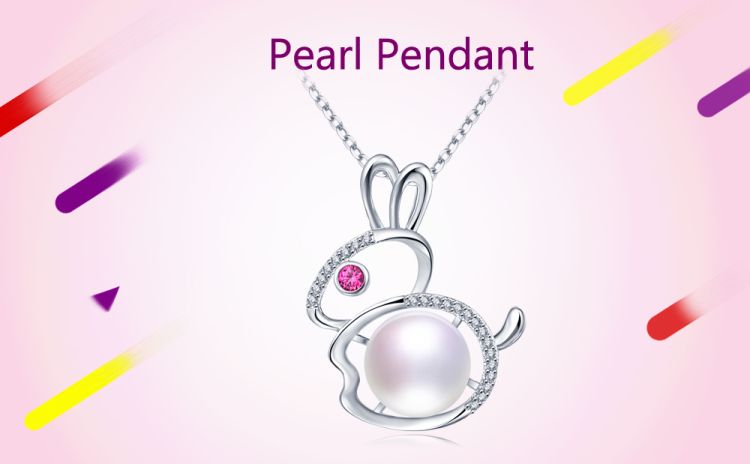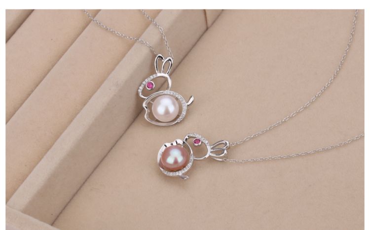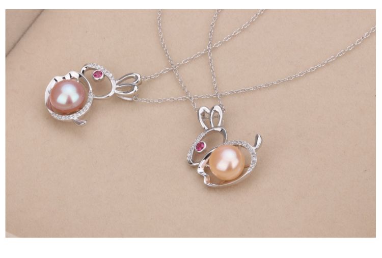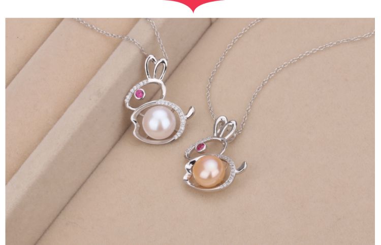 CYNMOON Natural Freshwater Cultured AAAA Quality Pearl Pendant Necklace for Women Sterling Silver Rabbit Design Pearl Jewelry