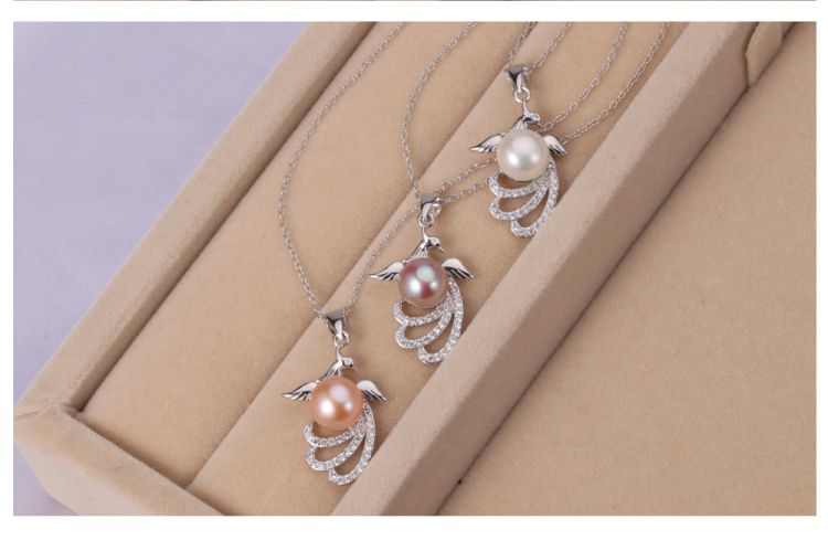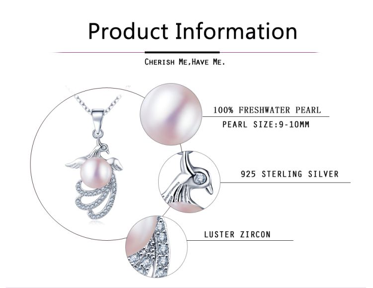 CYNMOON Natural Fresh Water Pearl Pendant Necklace Jewelry for Birthday Gift Sterling Silver Jewelry