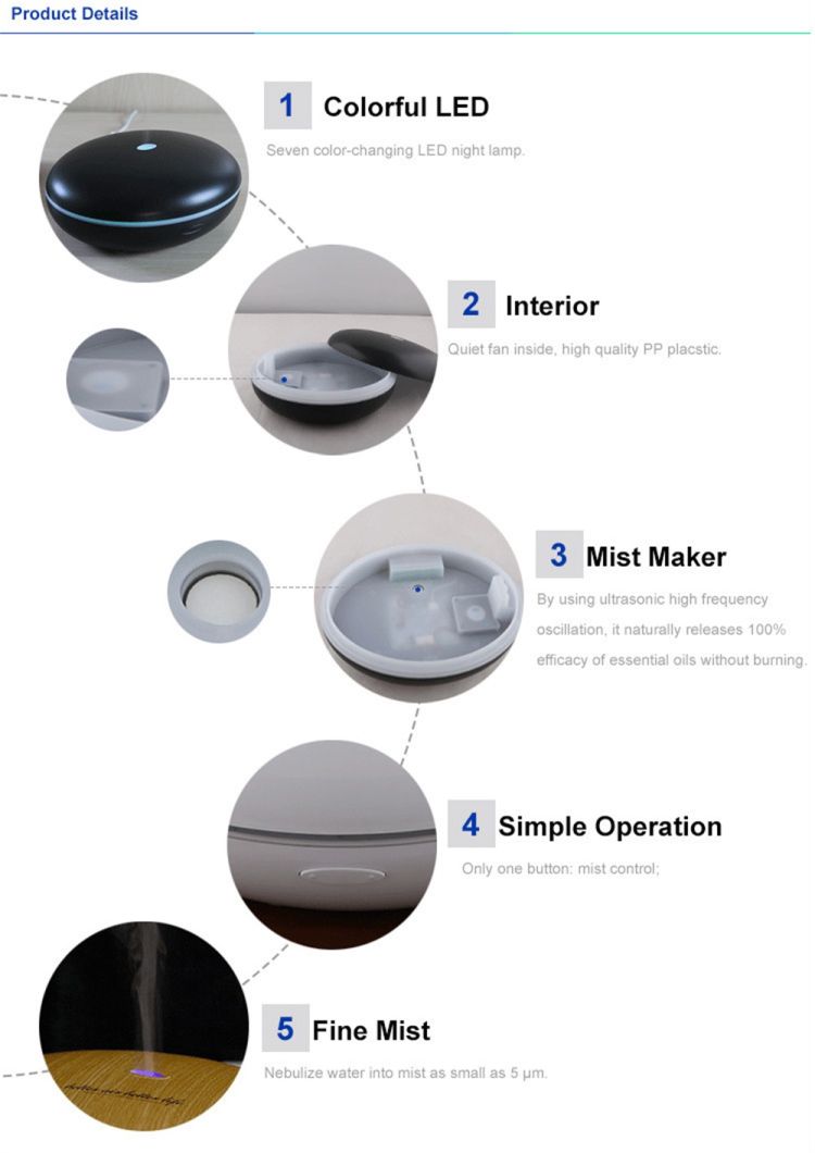 Item Tittle-- Flatting Wood Grain Humidifier Unltrasonic Tray Aromatherapy Essential Oil Diffuser LED Lights Home Office Bedroom