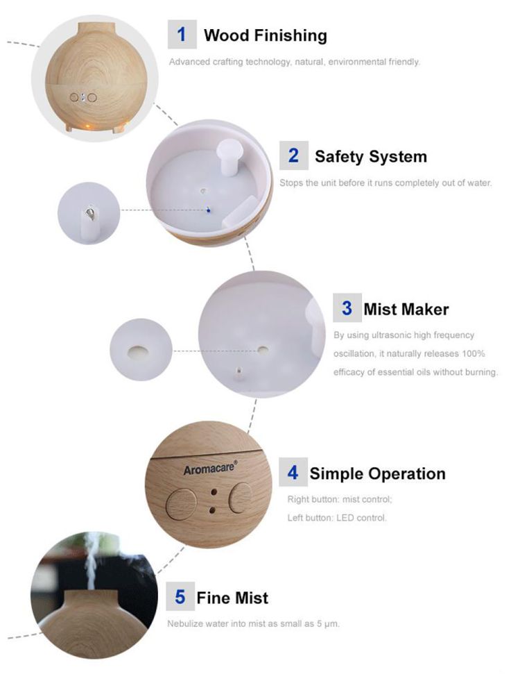 Item Tittle-- Wood Grain Humidifier Unltrasonic Aromatherapy Essential Oil Diffuser LED Lights Home Office Bedroom