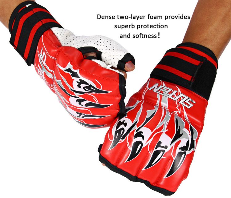 - This half finger gloves are specially used for some fighting exercises, like Sanda, fighting, sandbag bag, etc.