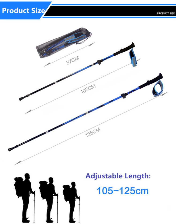 This carbon fiber trekking pole is lightweight and sturdy. Lever lock system ensures safety, could be locked in 1 second and can be adjusted quickly even with gloves on. Suitable for many different kinds of terrain by its tungsten steel tip and removable rubber tip protector plus a mud basket. EVA foam handle with anti-slip wrist strap, very comfortable to hold. It is really a useful trekking pole for your hiking, mountaineering or walking.
