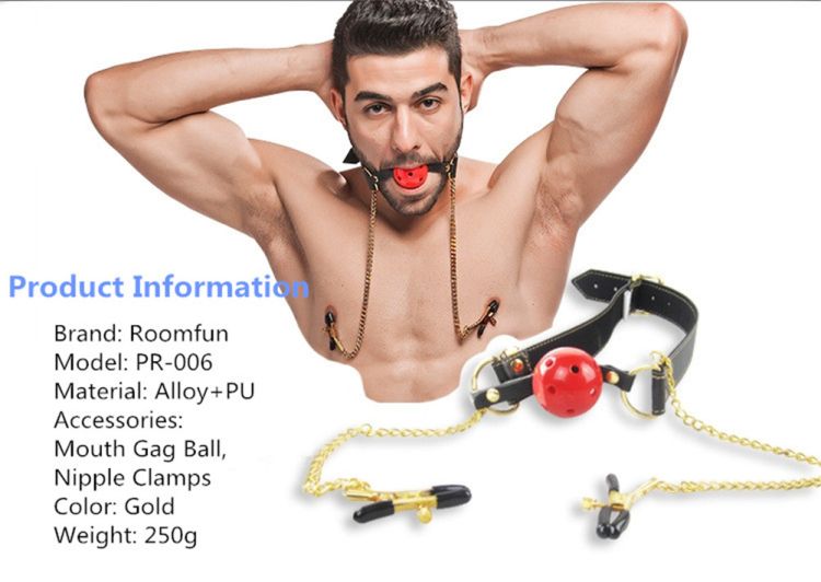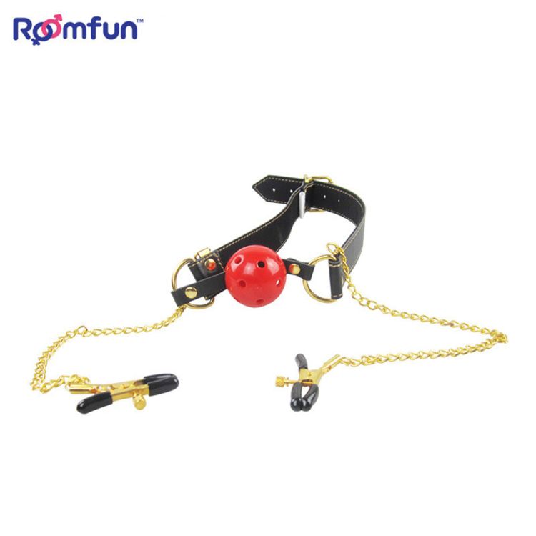 Roomfun Fetish Slave Mouth Gag Ball Nipple Clamps BDSM Bondage Adult Games Erotic Sex Toys