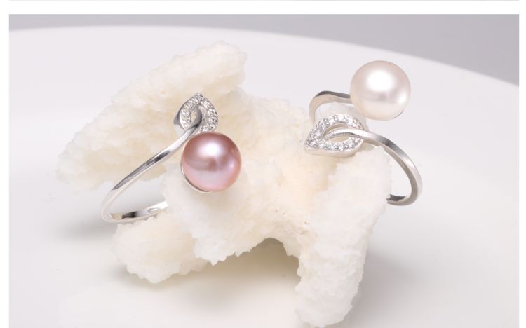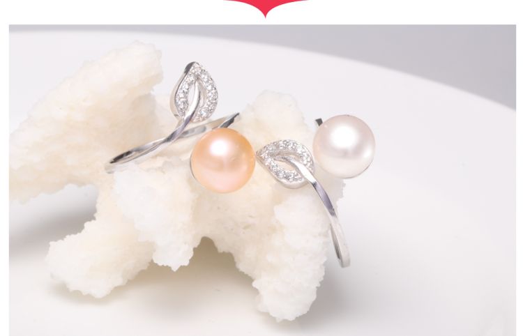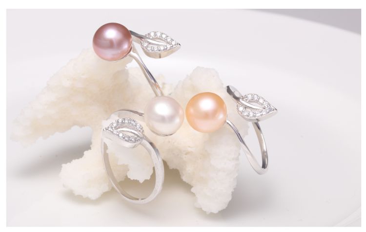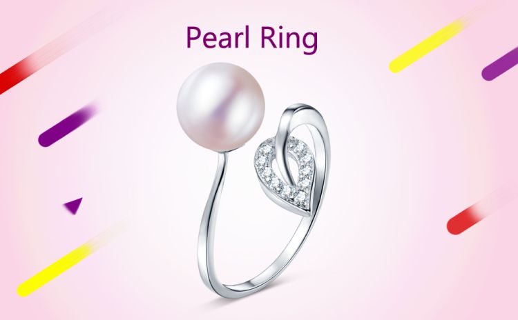 CYNMOON Natural Freshwater Pearl Engagement Rings for Women, White Pearl Rings Silver Jewelry
