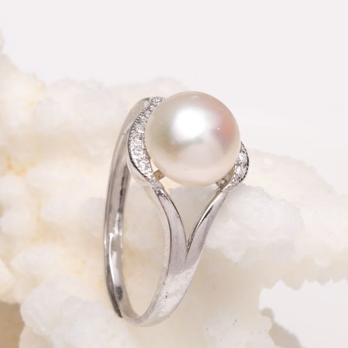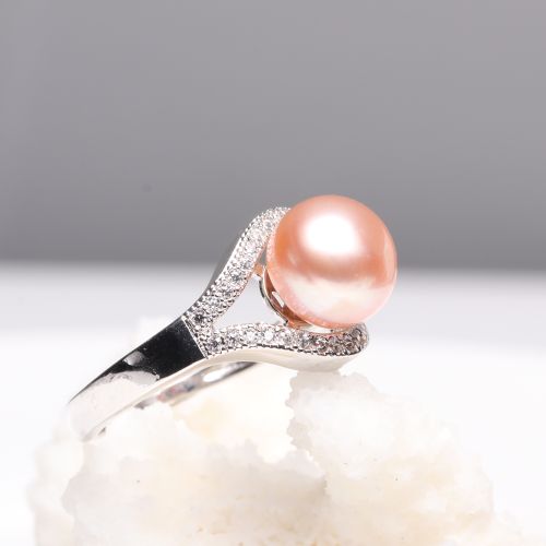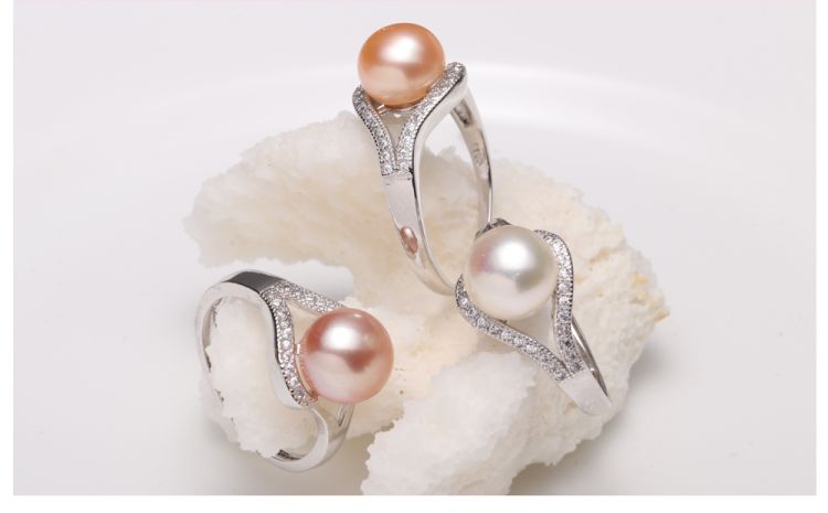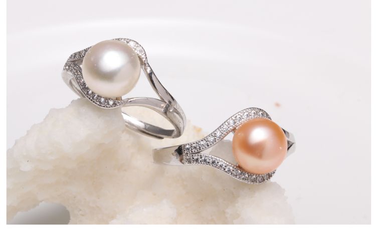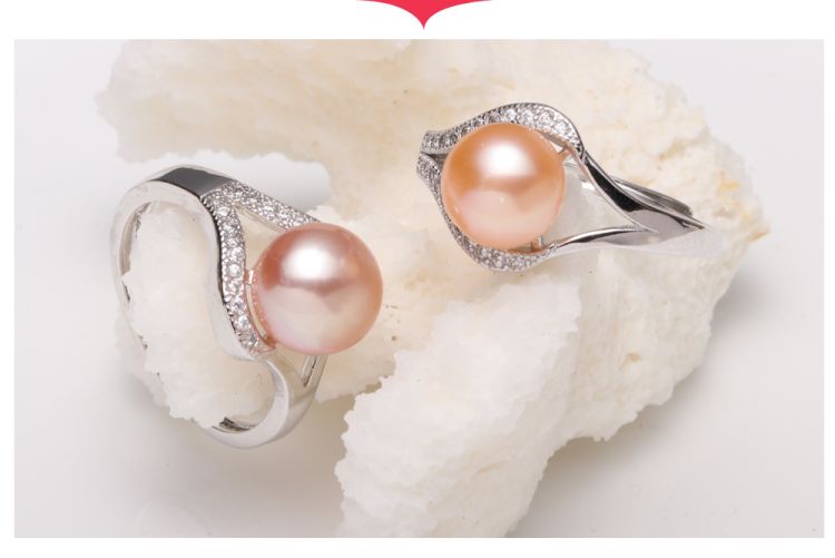 CYNMOON Sterling Silver Simple Freshwater Cultured Pearl Ring Pink White Purple Pearl Wedding Ring
