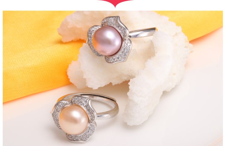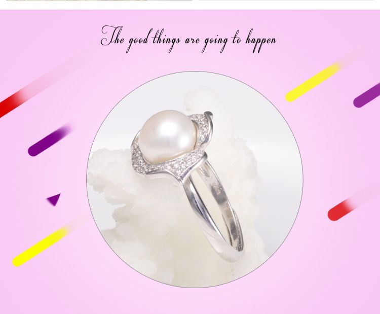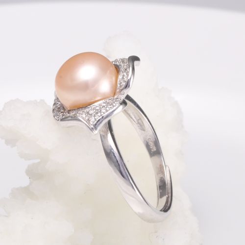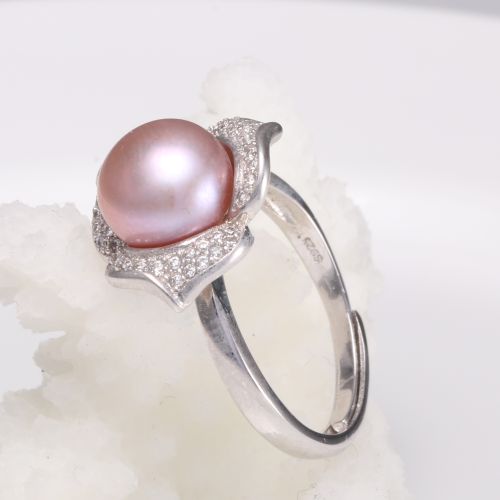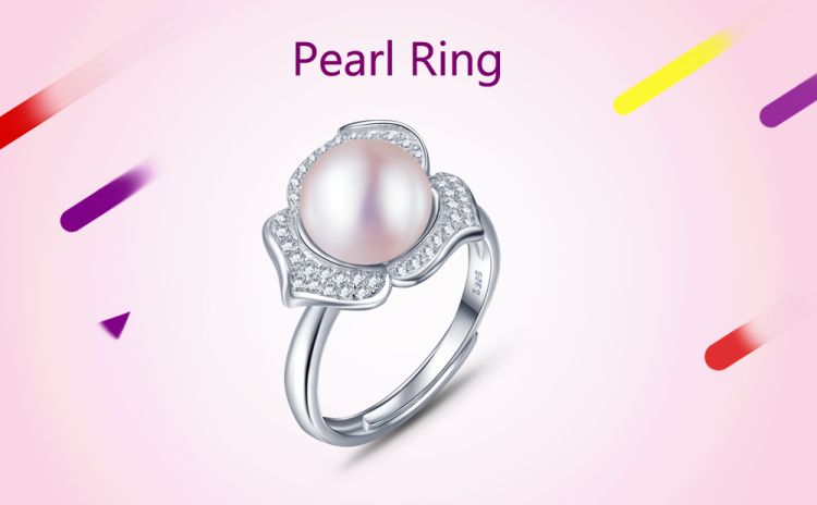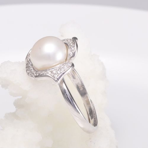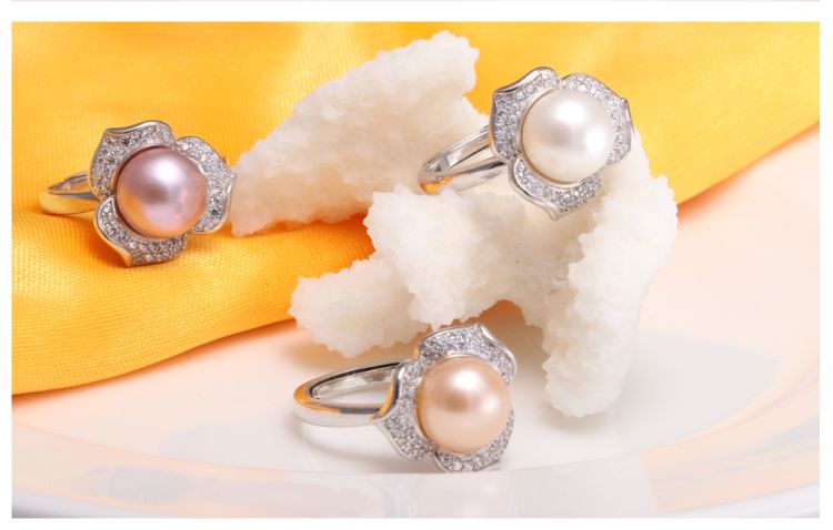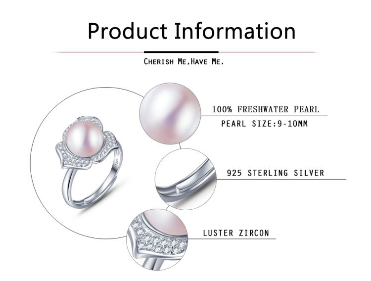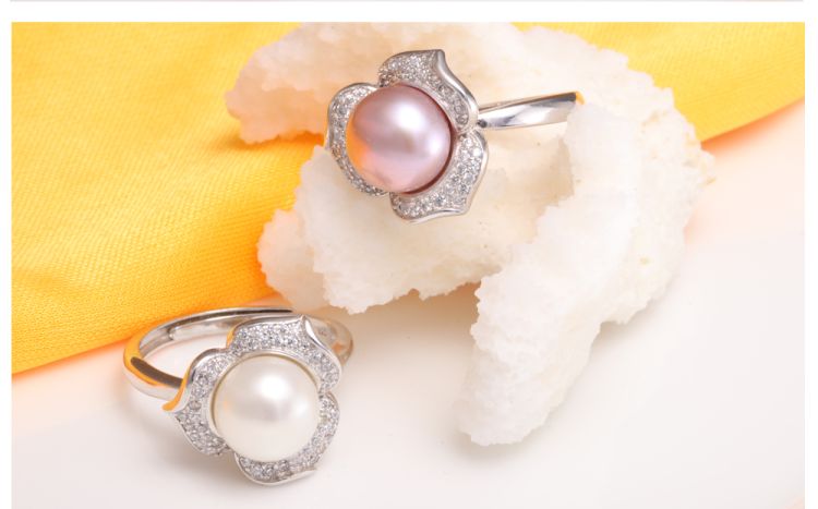 CYNMOON 9-10mm AAAA Quality Natural Freshwater White Pearl Adjustable Ring,Silver Pearl Engagement Wedding Ring for Women
