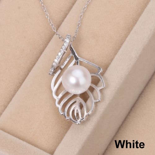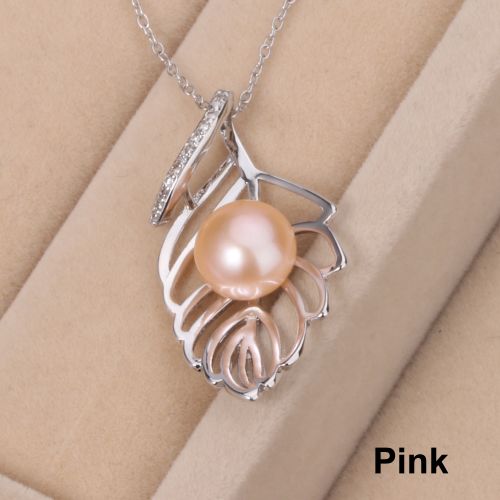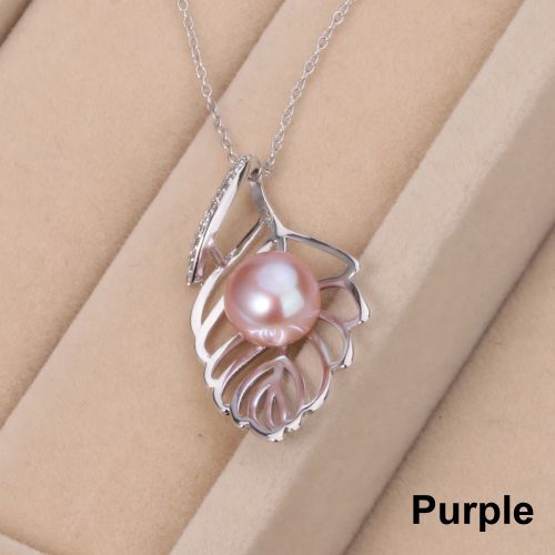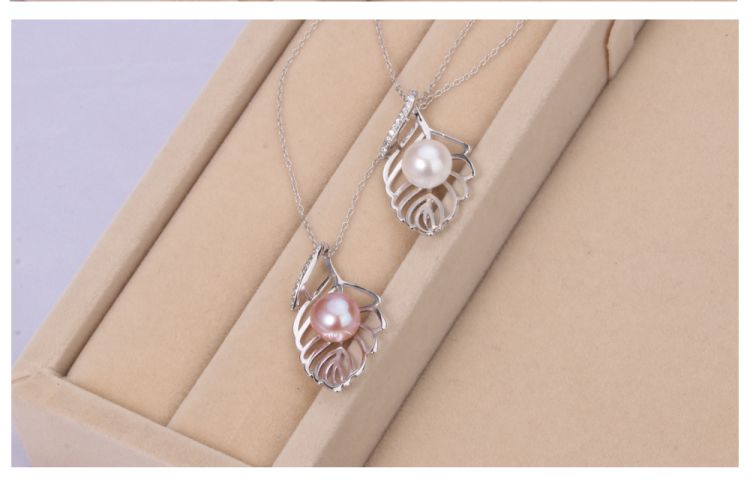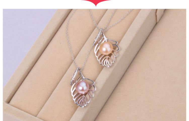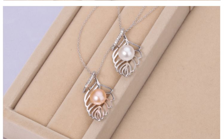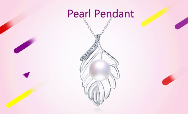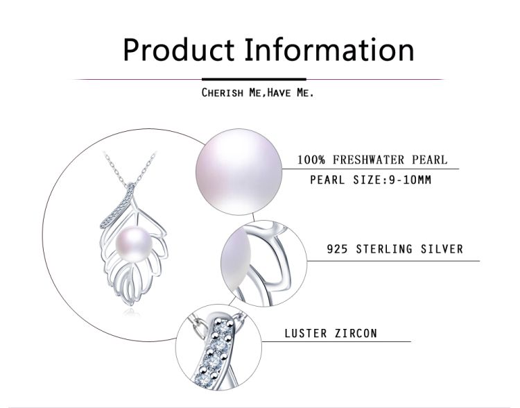 CYNMOON Natural Freshwater Pearl Pendant Necklace for Women Sterling Silver Leaf Shaped Pearl Jewelry