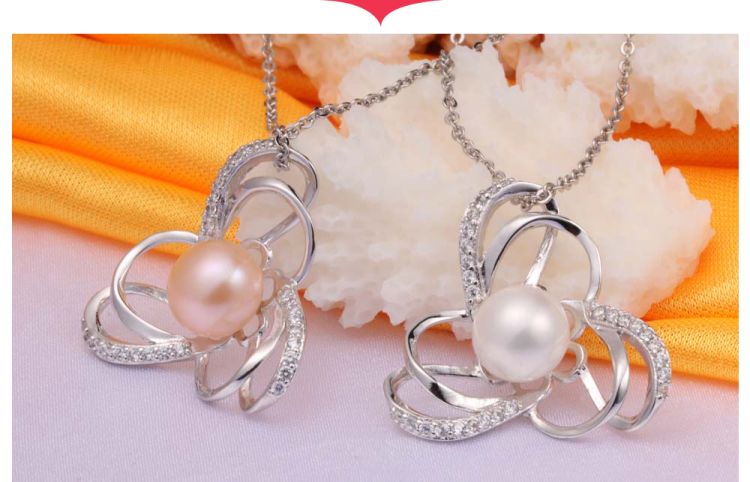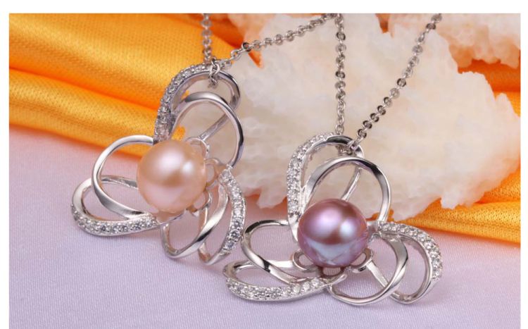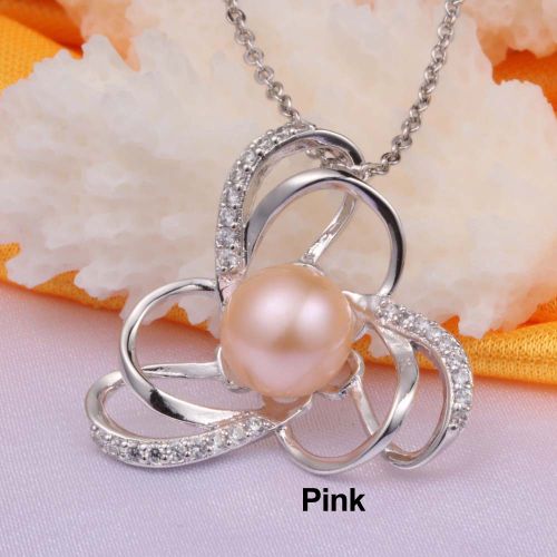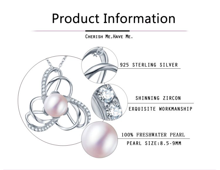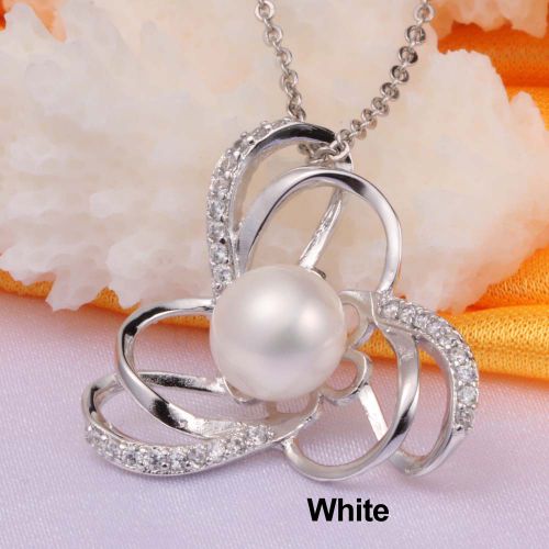 CYNMOON 8-9mm AAAA Quality Freshwater Pearl Pendant Necklaces, Silver Pearl Wedding Jewelry for Women