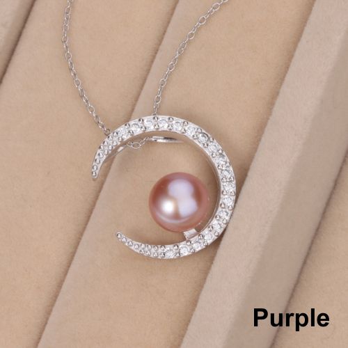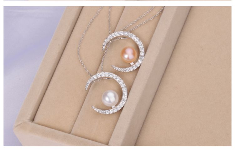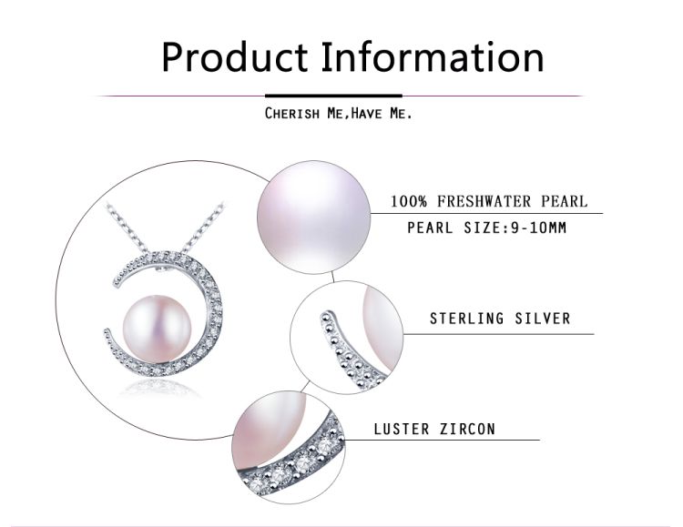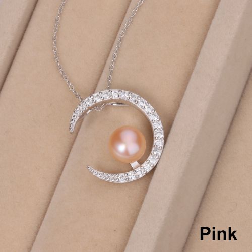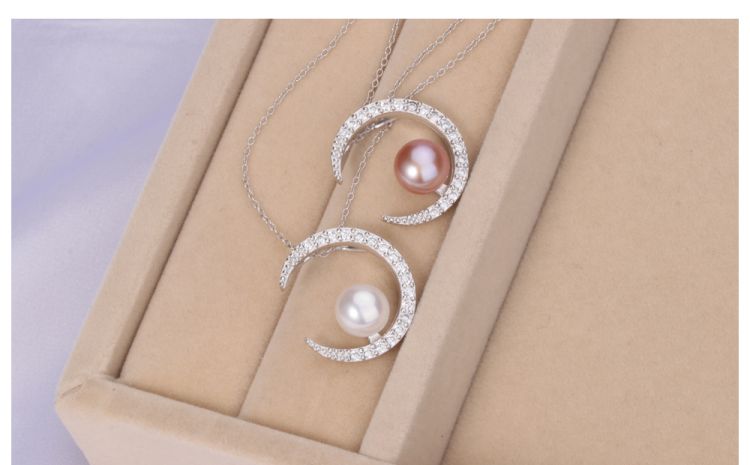CYNMOON women trendy natural freshwater pearl pendant necklace moon design silver jewelry