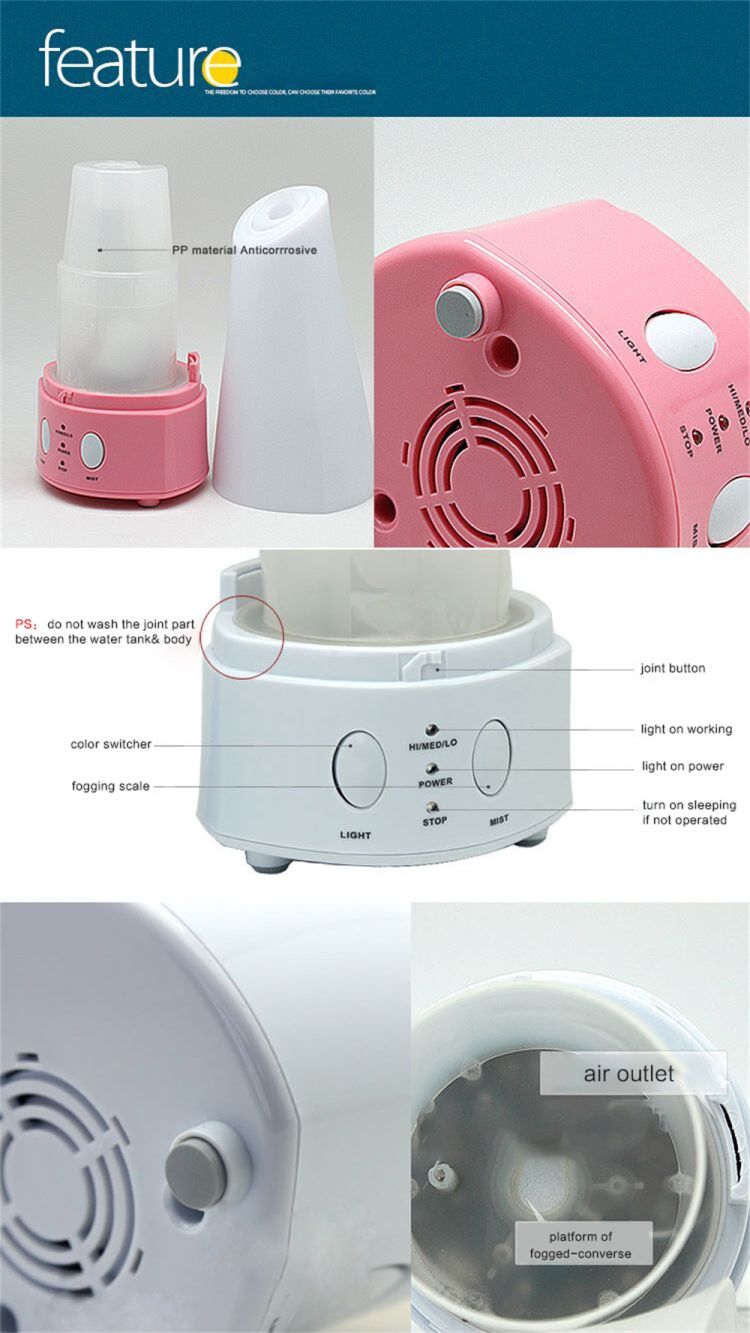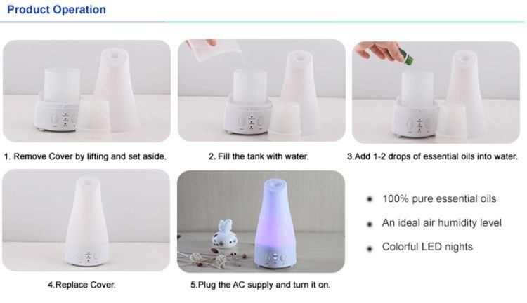Item Tittle-- Adjustable Ultrasonic Humidifier Mute Aromatherapy Essential Oil Diffuser Colorful LED Atomization 100ML